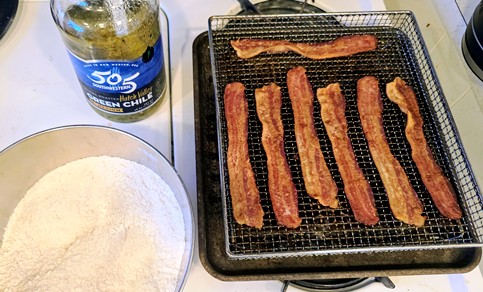Start preheating the oven to 400 degrees.- Cook the bacon by your preferred method. Drain, reserving the drippings.