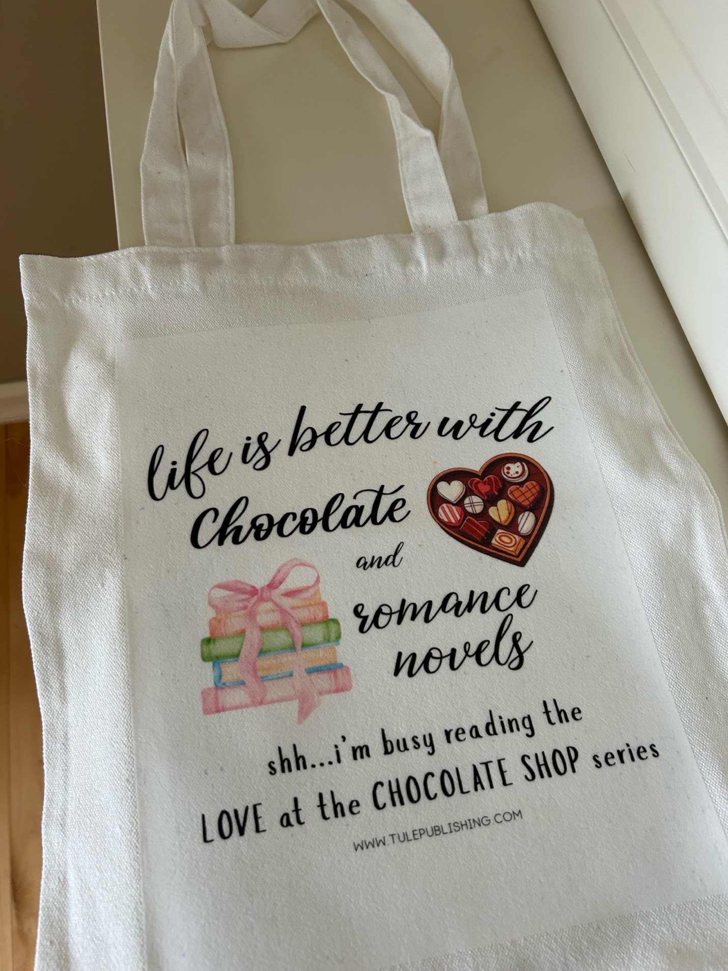 I love dark chocolate I haven’t read these books but would love to The tote bag is nice too!!