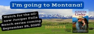 Then Forever Cowboy becomes Book 1 in my brand new Juniper Falls Ranch series with three more books that happen in the glorious Big Sky country of Montana. I’m writing like crazy and having the time of my life with my cowboys and their bold women counterparts.