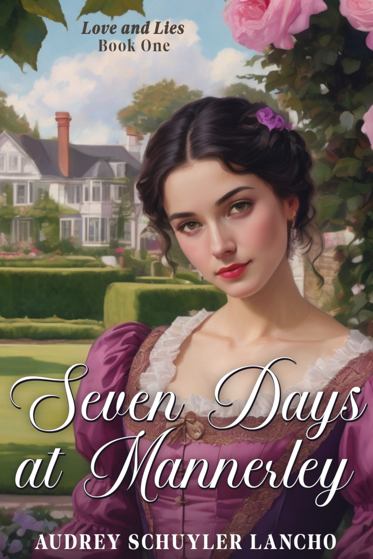 A: I’ve always written books, even as an elementary school student. I’d bind them with a cereal box’s cardboard and a stapler! In high school I continued writing prose, but of course no one knew about it––because, how embarrassing and uncool! As a twenty-something, I got really interested in my family’s genealogy, specifically my ancestors Andrew Jackson Shuler and John Adam Schuyler. I wrote a family saga based on true events from their lives, but to put it plainly, it was horrible. I learned all my writing lessons from that failed, and later, shelved manuscript and invaluable feedback from professional author friends such as Cindy Holby. It’s now just a file on my computer that I’ll always be thankful for, because it taught me what I needed, because the next book I wrote was Seven Days at Mannerley! In 2020, now heavily pregnant with my second son and just having turned 31, I quit my teaching job with my husband’s support and began to pursue writing full-time. Well, not full-time. It was more like during my baby’s nap times. He’s still a great napper, so I get 1-3 hours of work in daily.