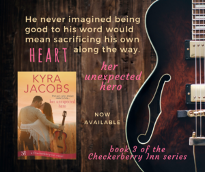Kyra’s latest release is Her Unexpected Hero, book 3 in the Checkerberry Inn series.
