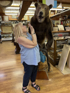 Every museum building had a story to tell and so many artifacts from 15o years ago. We really got the flavor of life in an old West gold rush town. We even rode a steam train from Virginia City to neighboring ghost town, Nevada City and back again. Oh, and we saw a bear–okay, he was in a museum, but at one time, he was a ferocious grizzly.