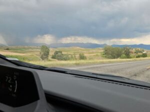 On the way home, clouds rolled in and the sky–that huge Montana sky–turned dark and threatening, but we made it home pretty much dry because the storm stayed pretty much north of us.