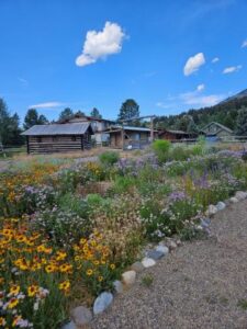 Leah told us about the Crail Ranch Homestead, which we visited after obtaining our beauty upgrades. It’s no longer a ranch but the remnants of what used to be a huge spread before it was sold in part to former NBC newscaster Chet Huntley to create the Big Sky Resort. Located in a suburban neighborhood, the current property is a mere sliver of the original 960 acres. The homestead and outbuildings, still furnished in the style of the turn of the Twentieth Century, are available for self-guided tours. Gardens maintained by local residents feature native flowers, vegetables, and herbs. The vista is stunning. We enjoyed our peaceful stroll in this historic local park.