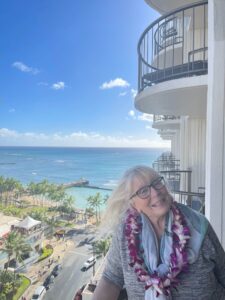 The sun is in and out, little showers now and again, but it’s kinda breezy so the temps are just tropical and nice. There are two pools here at the hotel that I may take advantage of this afternoon. I’m definitely heading down to the beach in a bit to walk and people-watch–an author’s favorite pass time. When Son gets back this evening we’re going to a luau at a hotel up the street–The Royal Hawaiian maybe? Not sure. But we’ll take pictures and I’ll share them.