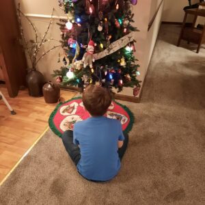 Here are some fun pics for you of Grandboy helping us decorate when he and Son came over last night. We missed DIL, who was working an event, but we sure enjoyed supper and bringing holiday joy to our house, which still feels new, albeit, not as much as it did last Christmas. Enjoy!