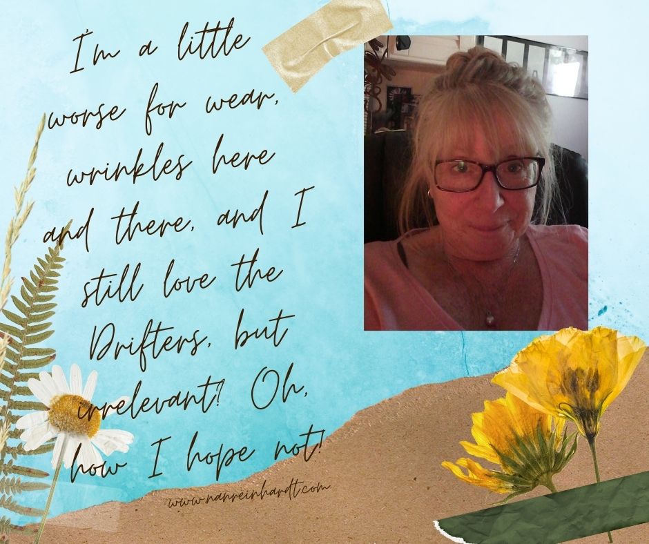 Sister PJ, who is five years older than me is so much more tuned into pop culture than I am, but I think that has to do with the fact that I don’t watch network TV or listen to much music that was produced after 1980–some I do, but mostly, I’m stuck in the era of the Drifters, Carole King, James Taylor, the Beatles, and yes, I confess, even earlier because I’m crazy about Big band music and Frank Sinatra makes me swoon just like he did my mom. I wrote about it on Word Wranglers this week–how that old music takes me back. I must be feeling particularly nostalgic… well, old this week. I’m wondering if that makes me more boring than usual? Or worse, irrelevant?