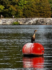 Gratitude this week: Time with Minnie is always a treat; Got one editing gig off my table; Forever Cowboy is getting great reviews! The weather has been perfect for lake life; and I saw a cormorant–my first one! (Here it is sitting on a float by the dam, and yes, that is indeed bird poop… the gulls perch on these buoys every fall before they head south, each one staking a claim in their own special way. It’s kinda funny.)