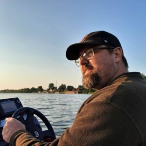 When I said I was, he wondered if either his dad or I wanted to go out trolling on the lake for bass or walleye. Husband was looking to sleep in, but I figured, “Why not? It was a chance for some Mom/Son time, which is rare these days (as it should be, he has his own family to be with), so I jumped up, pulled on some clothes, made a cup of coffee to go, and met him down at the dock.