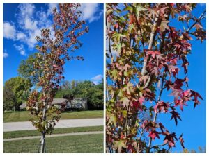 Gratitude for this week: Liz and I had a great retreat in Bardstown; I got 7800 words written on retreat; my birthday flowers were still pretty when I got home; our little sweet gum tree is full of fall color; got to see Grandboy in a community theater production of Shakespeare’s As You Like It–he was adorable, fab report from the cardiologist!