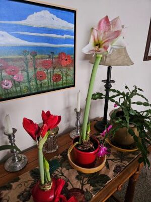 Gratitude for This Week: The people who are fighting the fight–protesters and mayors and the governor of Minnesota; the countries coming to defend Greenland against an invader; writing; talking to Son as he drives home from school; my amaryllises are blooming!