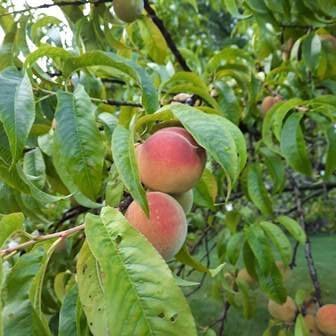 Most all the flowers survived the drought, although the ferns outside my office window got some brown on them. The hollyhock seeds I planted finally pushed through and they’re on their way, as are the California poppies. The lavender didn’t like the heat much and it may have to replaced next spring, but everything else is doing well. The peaches are tiny, but they’re coming along. This is the first summer the peach tree has borne fruit for us. We’re excited to taste them when they get ripe enough.