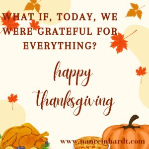 That’s all, actually. Happy Thanksgiving, mes amis. I am grateful for so many things in my life, but close to the top is that I get to share my thoughts, my joys, my sorrows, my life with all of you. Have a good day today–rest, be peaceful, spend time in fellowship with those you love, drink some good wine, and taste everything!